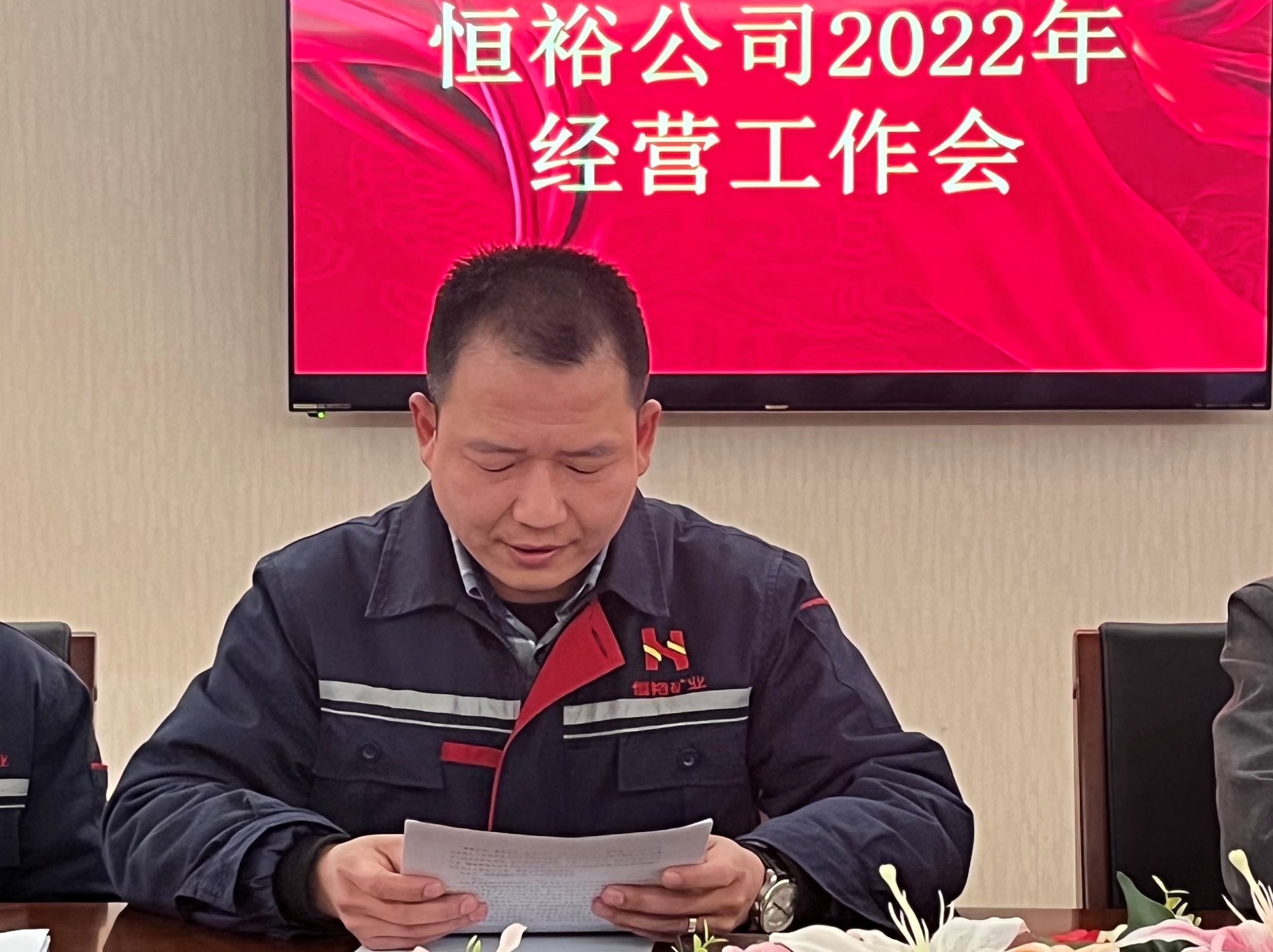 2月3日,欒川恒裕礦業(yè)有限公司召開年經營工作會議。恒裕公司全體中高層管理人員、2022年受表彰人員、科長及車間主任代表參加會議,集團公司冶金礦產部潘劍云總經理列席會議。會議全面總結2022年恒裕公司建設經營情況,表彰過去一年優(yōu)秀團隊、優(yōu)秀管理者及各崗位表現突出的優(yōu)秀員工,對2023年工作思路和重點任務安排部署,動員全體員工堅定信心、砥礪前行,共創(chuàng)恒裕美好新篇章。