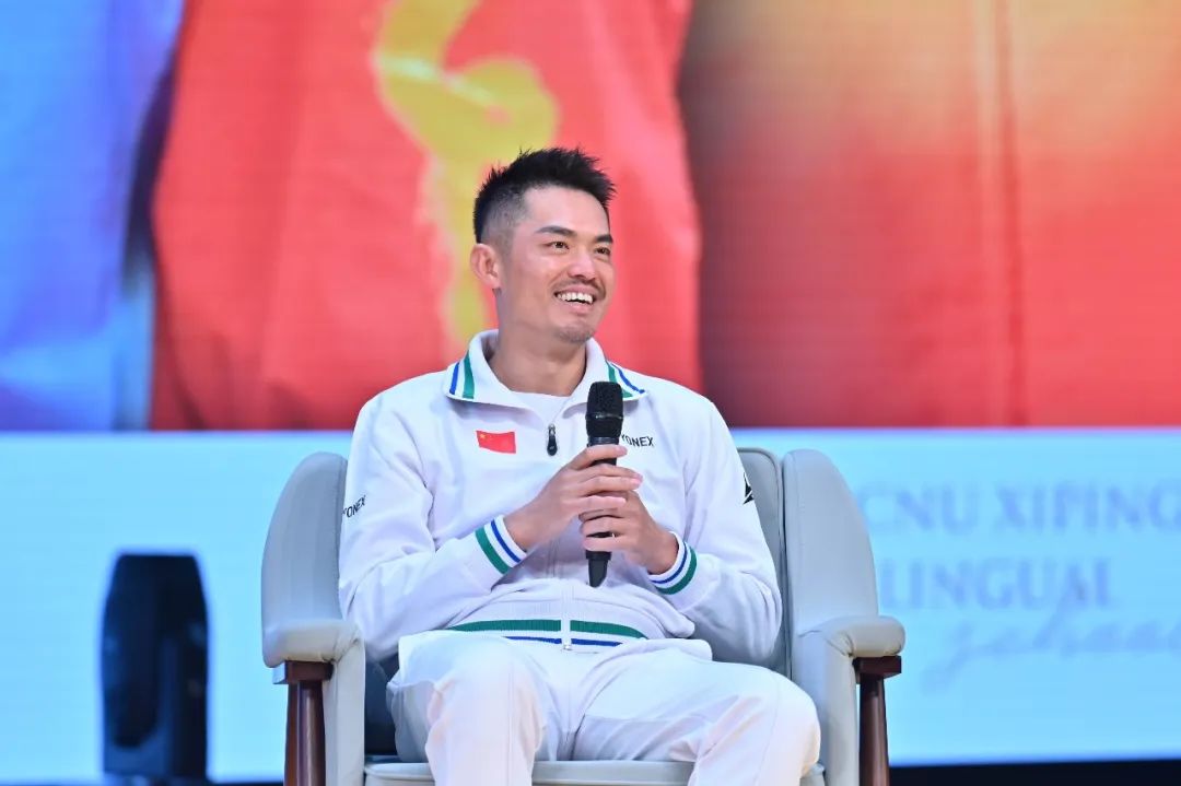 本次活動(dòng)現(xiàn)場,林丹先生應(yīng)邀接受訪談,與華希學(xué)子們圍繞“丹式”體育精神展開了對話。從籍籍無名的羽毛球小將,到羽毛球歷史上第一位雙圈全滿貫選手,林丹向在座的同學(xué)們分享了自己一路成長的歷程。