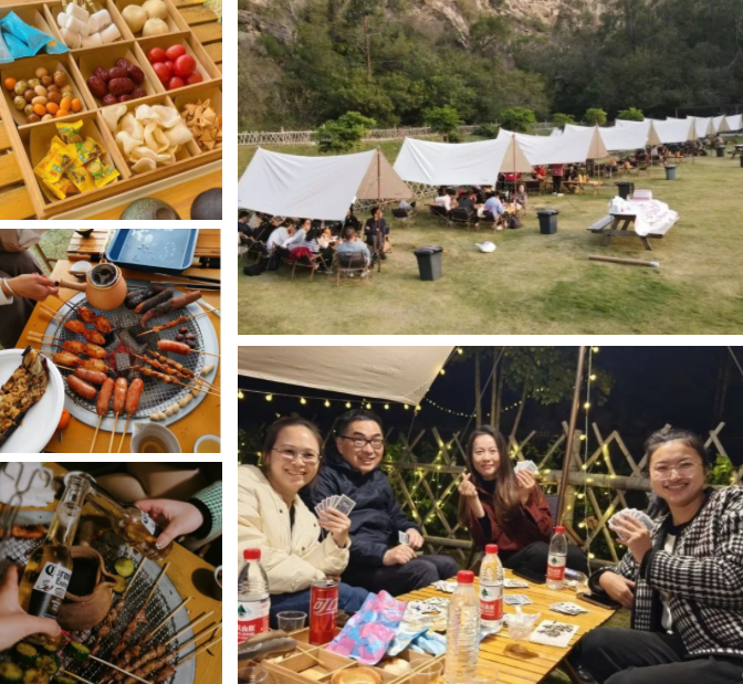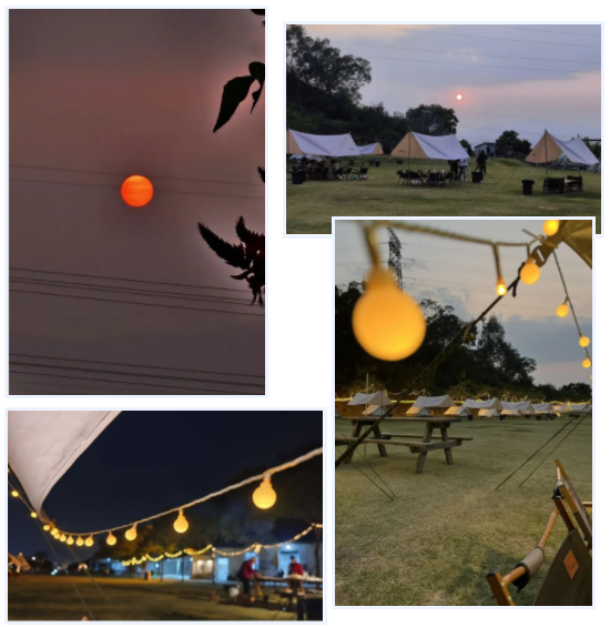 相聚的時(shí)刻,從來(lái)不缺少美食,17:30,燒烤晚餐開(kāi)啟。令人驚喜的是,整片營(yíng)地向西,一眼望去,夕陽(yáng)正西下,我們一起遇見(jiàn)了這個(gè)春天震撼的落日景色。星星點(diǎn)點(diǎn),斑駁光影照在天幕下,美食美酒伴圍繞,聽(tīng)著小伙伴們述說(shuō)各自精彩有趣的經(jīng)歷過(guò)往。雖然時(shí)不時(shí),還要接個(gè)工作電話,但是當(dāng)下,我們?cè)谝黄穑褪亲钪档瞄_(kāi)心的。