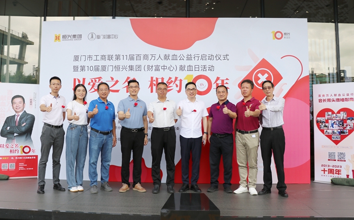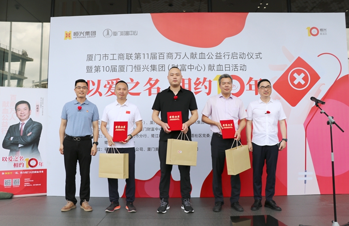 晨間風(fēng)起,如約奔赴!7月26日,廈門市工商聯(lián)第11屆百商萬人獻(xiàn)血公益行啟動儀式暨第10屆恒興獻(xiàn)血日活動順利舉辦?;顒佑蓮B門市工商聯(lián)、廈門市中心血站、廈門恒興集團(tuán)主辦,本次主題為“以愛之名,相約10年”。在超強(qiáng)臺風(fēng)杜蘇芮或?qū)⒃斐捎绊懙那跋?,截至?dāng)日15:00,廈門財(cái)富中心會場和寶拓大廈會場共有258人報(bào)名參與,181人成功獻(xiàn)血,當(dāng)日獻(xiàn)血量47500毫升。至此,恒興獻(xiàn)血日10年累計(jì)總獻(xiàn)血量達(dá)487140毫升。
