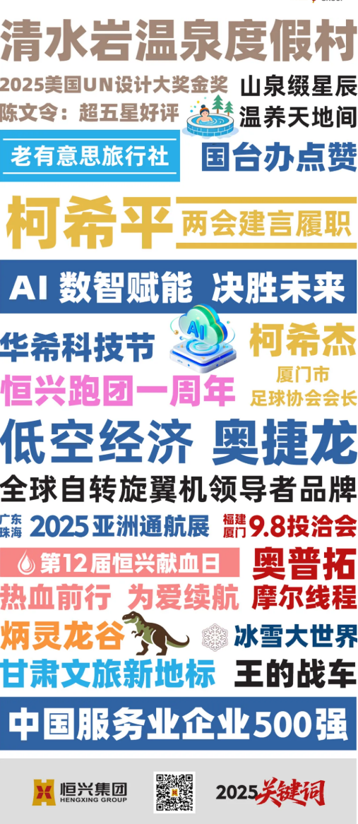 盛夏時(shí)節(jié),恒興的發(fā)展熱潮與氣溫同步攀升。清水巖溫泉度假村憑借獨(dú)特的自然稟賦與設(shè)計(jì)匠心,榮膺2025美國UN設(shè)計(jì)大獎金獎。藝術(shù)家陳文令盛贊其 “超五星” 體驗(yàn),《廈航》雜志的專題報(bào)道,讓 “山泉綴星辰,溫養(yǎng)天地間”的美譽(yù)傳遍八閩,讓這份美好飛向全國。